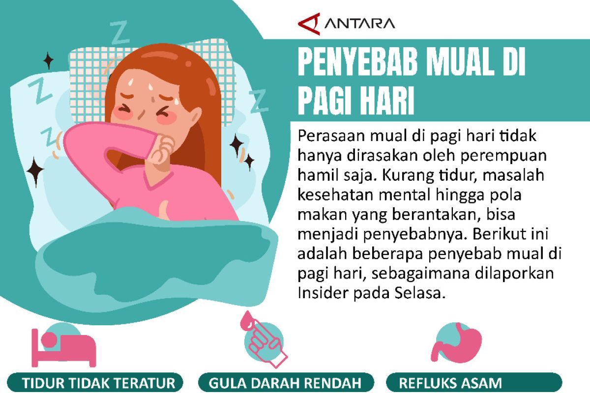 Padang (ANTARA) - Perasaan mual di pagi hari tidak hanya dirasakan oleh perempuan hamil saja. Kurang tidur, masalah kesehatan mental hingga pola makan yang berantakan, bisa menjadi penyebabnya. Berikut ini adalah beberapa penyebab mual di pagi hari, sebagaimana dilaporkan Insider pada Selasa.