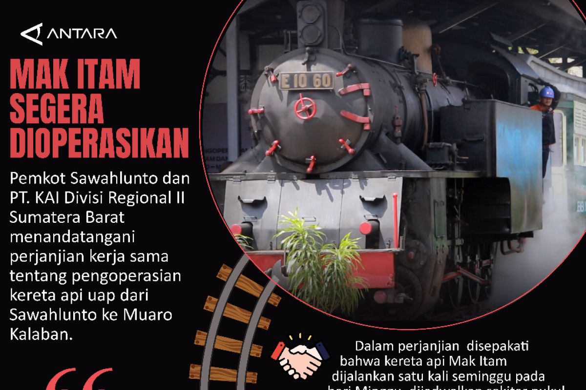 Padang (ANTARA) - Pemkot Sawahlunto dan PT. KAI Divisi Regional II Sumatera Barat menandatangani perjanjian kerja sama tentang pengoperasian kereta api uap dari Sawahlunto ke Muaro Kalaban.