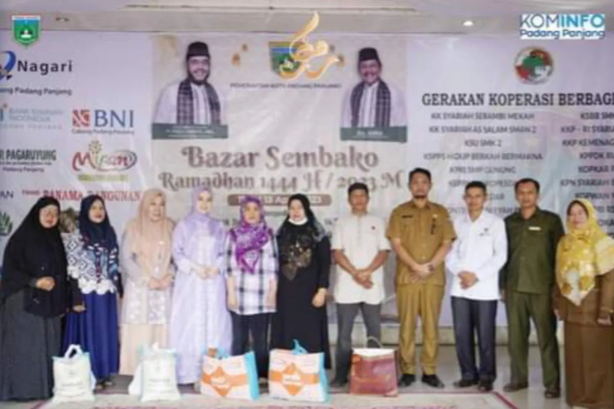 Ringankan biaya kebutuhan saat ramadan dan idul fitri 1444 hijriyah, pemerintah Kota Padang Panjang, Sumatera Barat, melalui Dinas Perdagangan Koperasi dan Usaha Kecil Menengah (Disperdakop UKM) gelar bazar pasar murah di pelataran gedung M. Syafe'i, Selasa.