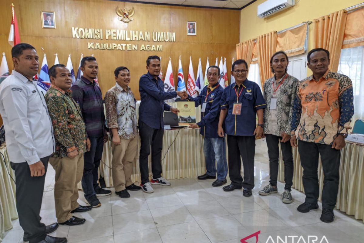 Komisi Pemilihan Umum (KPU) Kabupaten Agam, Sumatera Barat menerima pendaftaran bakal calon anggota legislatif (Caleg) dari Partai NasDem setempat pada hari ke 11 pendaftaran, Kamis (11/5).