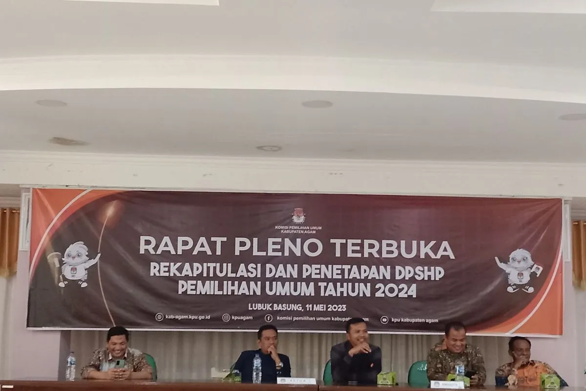 Komisi Pemilihan Umum (KPU) Kabupaten Agam, Sumatera Barat menetapkan Daftar Pemilih Sementara Hasil Perbaikan (DPSHP) pada Pemilu 2024 sebanyak 389.511 pemilih dari 391.865 pemilih pada Daftar Pemilih Sementara (DPS).