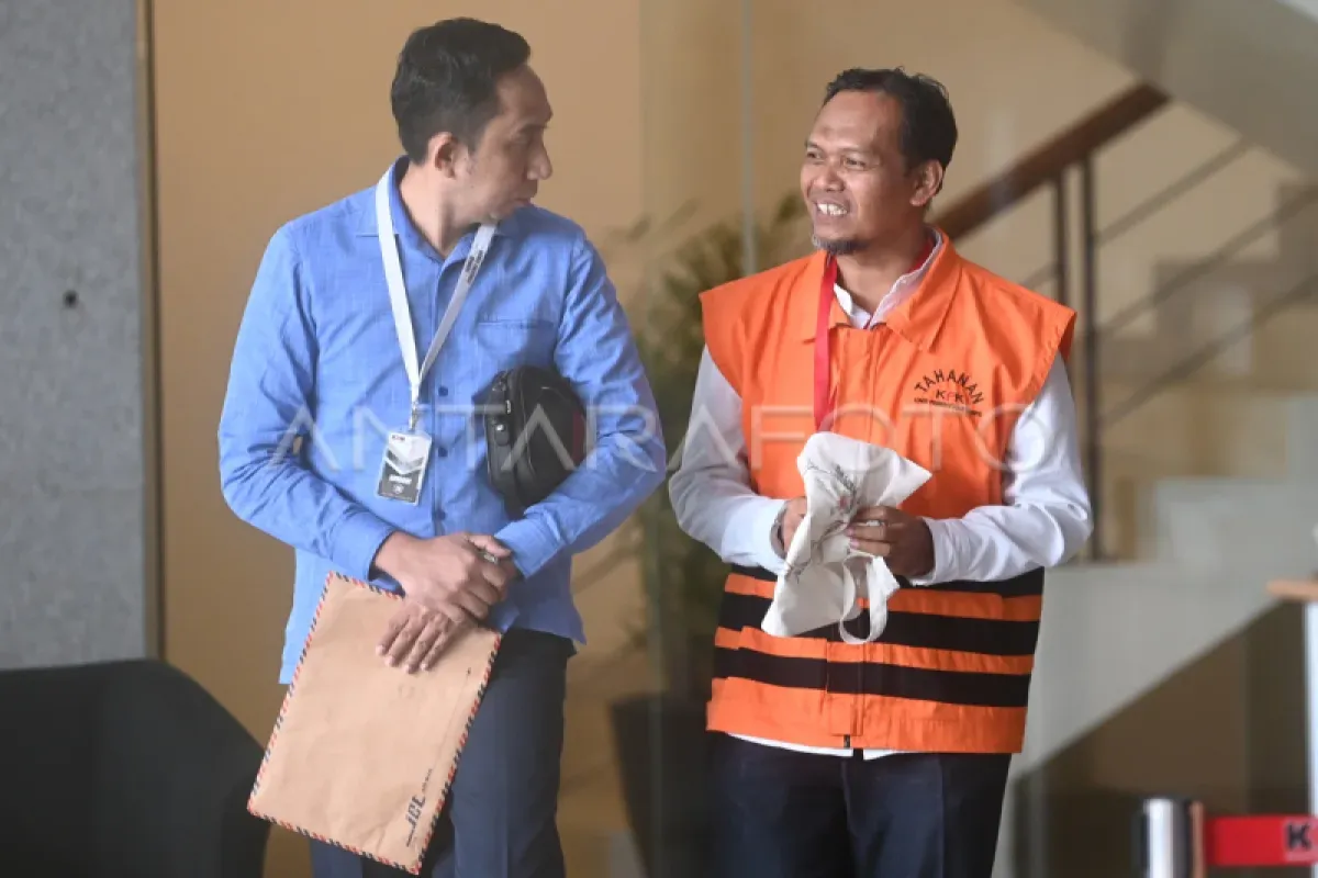 Tersangka kasus suap Harno Trimadi (kanan) berjalan keluar usai menjalani pemeriksaan di Gedung KPK, Jakarta, Jumat (21/7/2023). Mantan Direktur Prasarana Perkeretaapian Direktorat Jenderal Perkeretaapian Kementerian Perhubungan (DJKA Kemenhub) itu diperiksa terkait kasus dugaan suap pengaturan paket pekerjaan perlintasan sebidang Jawa Sumatra agar dimenangkan oleh PT KAPM yang dilakukan secara bertahap. ANTARA FOTO/Akbar Nugroho Gumay/foc.