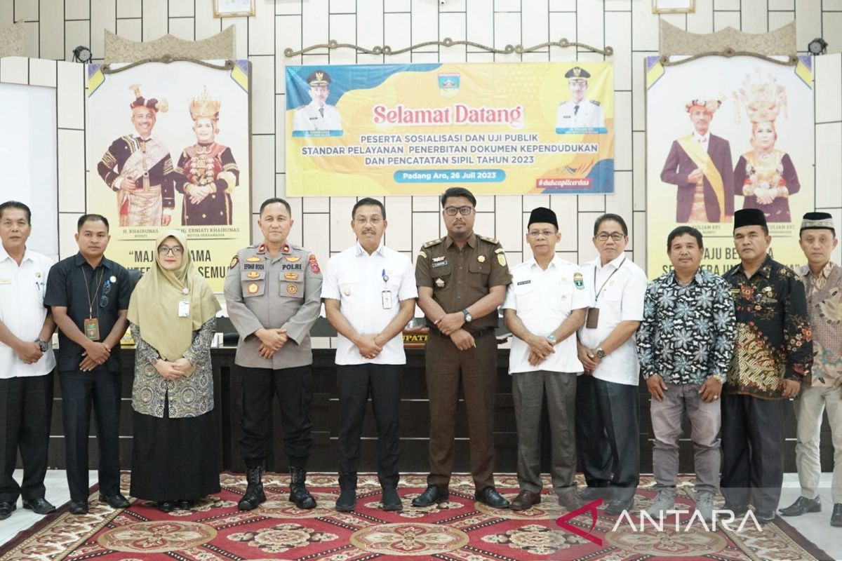 Padang Aro (ANTARA) - Pemerintah Kabupaten Solok Selatan, Sumatera Barat melakukan sosialisasi dan uji publik standar pelayanan dokumen kependudukan dan pencatatan sipil agar berjalan maksimal dan sesuai dengan aturan yang sudah ditetapkan.