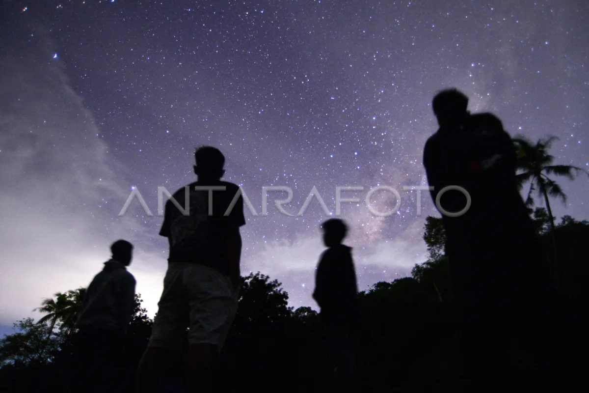 Sejumlah warga menikmati panorama gugusan bintang di Nagari Sumpu, Tanah Datar, Sumatera Barat, Minggu (13/8/2023) dini hari. Gugusan bintang galaksi Bimasakti dapat disaksikan langsung oleh masyarakat sekaligus menunggu fenomena meteor perseid yang menurut Badan Riset dan Inovasi Nasional (BRIN) akan mencapai puncaknya pada 13-14 Agustus 2023. ANTARA FOTO/Iggoy el Fitra/YU