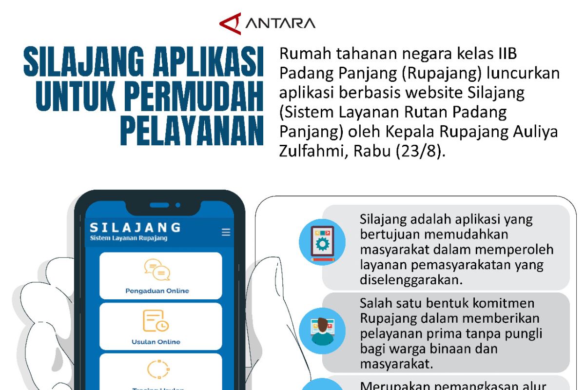 Padang (ANTARA) - Rumah tahanan negara kelas IIB Padang Panjang (Rupajang) luncurkan aplikasi berbasis website Silajang (Sistem Layanan Rutan Padang Panjang) oleh Kepala Rupajang Auliya Zulfahmi, Rabu (23/8).
