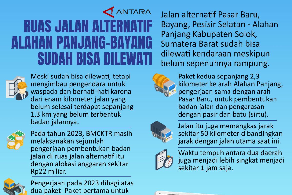 Padang (ANTARA) - Jalan alternatif Pasar Baru, Bayang, Pesisir Selatan - Alahan Panjang Kabupaten Solok, Sumatera Barat sudah bisa dilewati kendaraan meskipun belum sepenuhnya rampung.