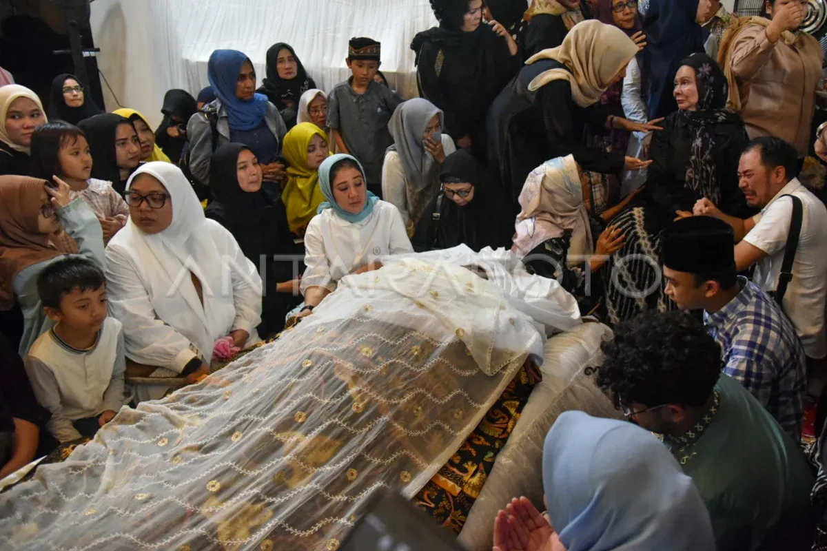 Keluarga dan kerabat berada di samping jenazah mantan Gubernur Sumatera Utara periode 2008-2011 Syamsul Arifin di kediamannya Jalan Suka Dharma, Medan, Sumatera Utara, Rabu (18/10/2023). Syamsul Arifin meninggal dunia pada usia 71 tahun dan akan dimakamkan pada Rabu (18/10) di Pangkalan Brandan, Langkat, Sumatera Utara. ANTARA FOTO/Fransisco Carolio/aww.
