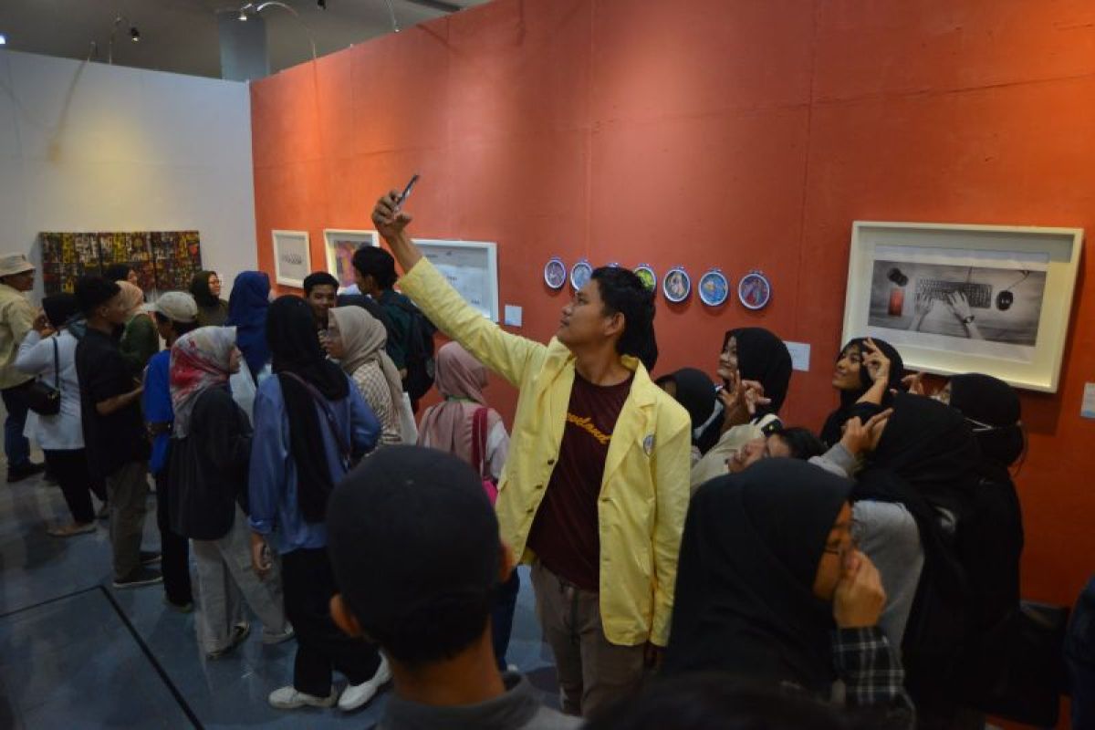 Padang (ANTARA) - Pameran seni rupa International Exhibition of Arts and Design dengan tema Mutuality yang digelar di Galeri Taman Budaya Sumatera Barat di Padang, Senin, dipadati pengunjung yang didominasi mahasiswa.
