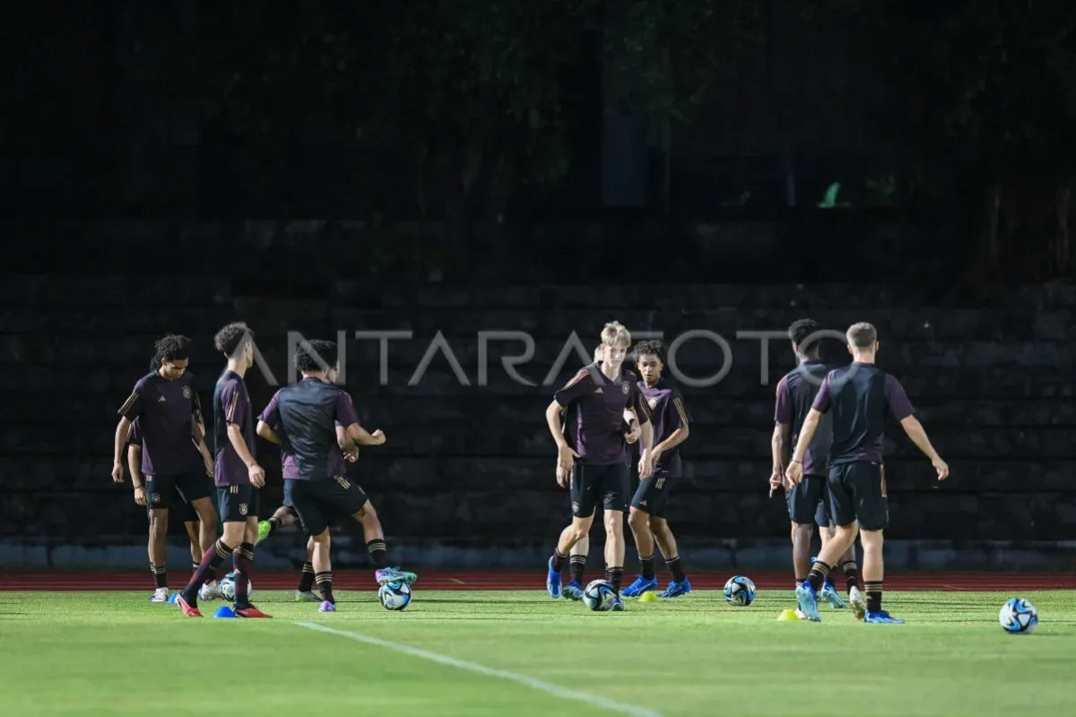 Pesepak bola Timnas Jerman mengikuti latihan resmi jelang pertandingan semi final Piala Dunia U-17 2023 di Lapangan Sriwedari, Solo, Jawa Tengah, Senin (27/11/2023). Timnas Jerman akan bertanding melawan Timnas Argentina pada semifinal Piala Dunia U-17 di Stadion Manahan Solo. ANTARA FOTO/Mohammad Ayudha/rwa.