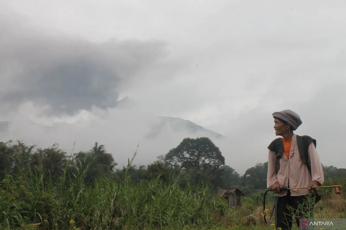 Petani di lereng gunung tetap beraktivitas saat Marapi erupsi