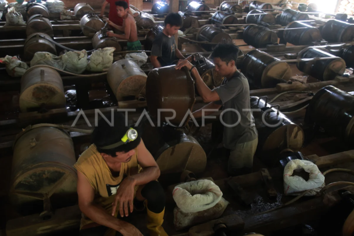 Sejumlah pekerja tambang mengisi air ke dalam tromol saat proses pengolahan emas di lokasi Pertambangan Rakyat, Desa Anggai, Pulau Obi, Kabupaten Halmahera Selatan, Maluku Utara, Minggu (4/2/2024). Pengolahan emas mentah tersebut memakan waktu sekitar 4 jam dalam sehari mampu menghasilkan 12 gram emas mentah setiap kali penggilingan dan hasilnya dijual ke pengepul dengan harga 6 juta per gram. ANTARA FOTO/Andri Saputra/Spt.