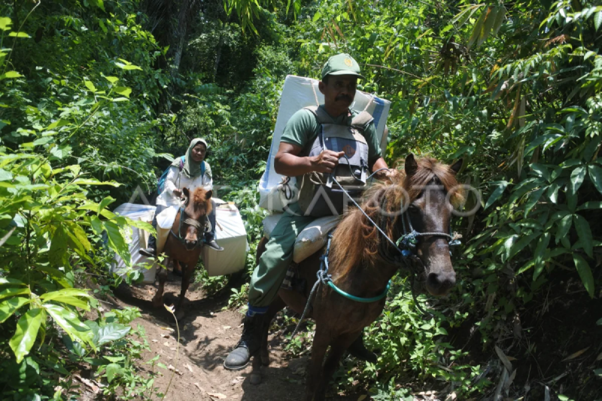 Distribusi logistik Pemilu 2024 menggunakan kuda di Jember