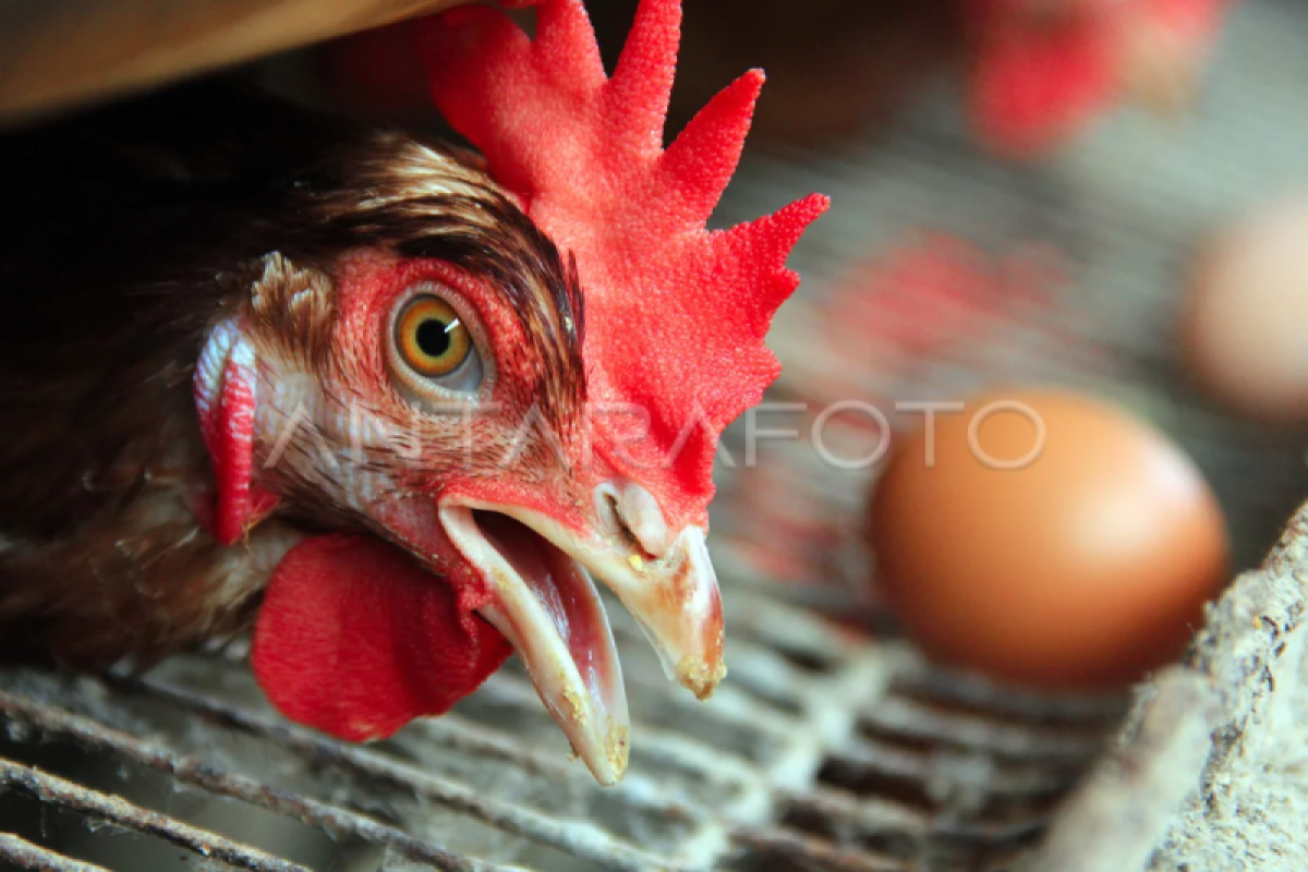 Seekor ayam petelur berada di dalam kandang di Kacamatan Pantai Labu, Kabupaten Deli Serdang, Sumatera Utara, Kamis (29/2/2024). Menurut pemilik ternak ayam petelur, harga pakan sejak dua pekan terakhir mengalami kenaikan dari harga Rp300 ribu per karung menjadi Rp430 ribu sampai Rp450 ribu per karung sehingga menyebabkan harga telur naik. ANTARA FOTO/Yudi Manar/Spt.