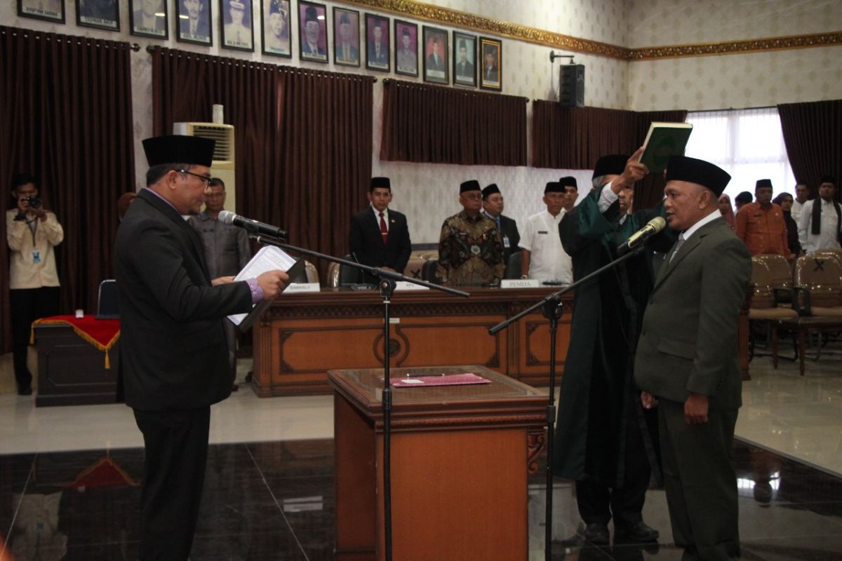 Prosesi pelantikan ini diawali dengan pengucapan sumpah janji oleh Indra Gosdedi yang dipandu oleh Ketua DPRD Kabupaten Agam.