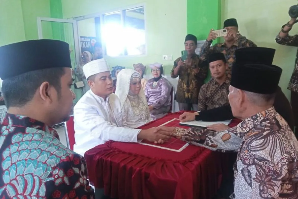 Solok (ANTARA) - Sebuah momen bahagia berlangsung di KUA Kecamatan Lubuk Sikarah, Kota Solok, pada hari ini, ketika pasangan pengantin Rino Oktavianus dan Lailatul Qadri melaksanakan akad nikah.