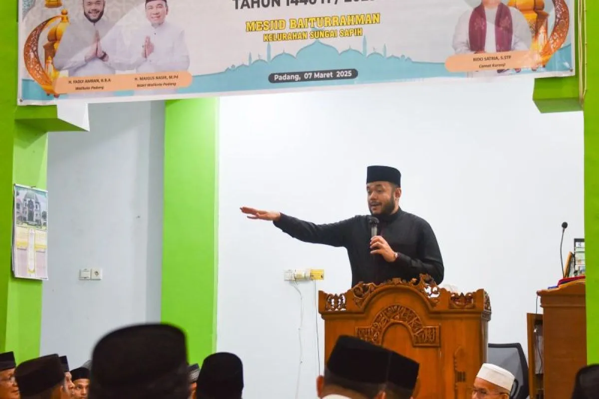 Padang (ANTARA) - Wali Kota Padang Fadly Amran memimpin kunjungan Tim I Safari Ramadan Pemerintah Kota Padang ke Masjid Baiturrahman, Komplek Bumi Minang III, Kelurahan Sungai Sapih, Kecamatan Kuranji, Jumat (7/3/2025).