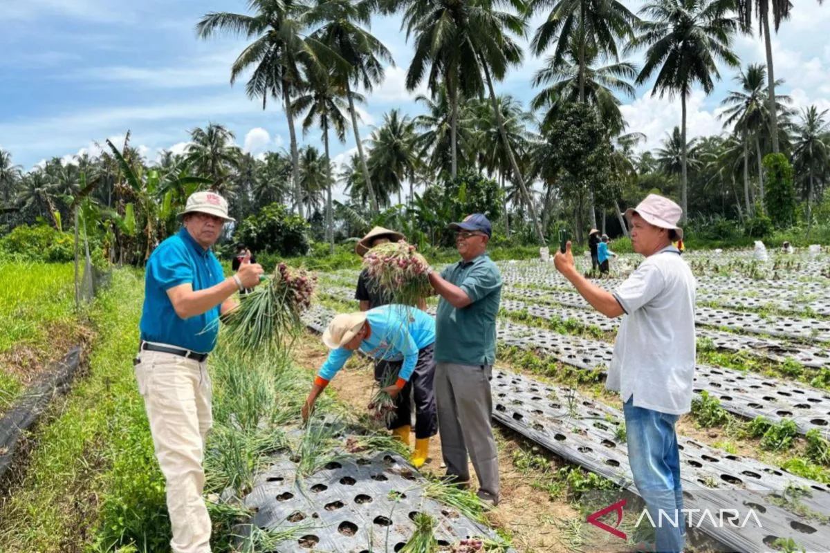 Wakil Wali Kota Payakumbuh Elzadaswarman saat melakukan panen bawang bersama petani. Antara/HO-Pemkot Payakumbuh