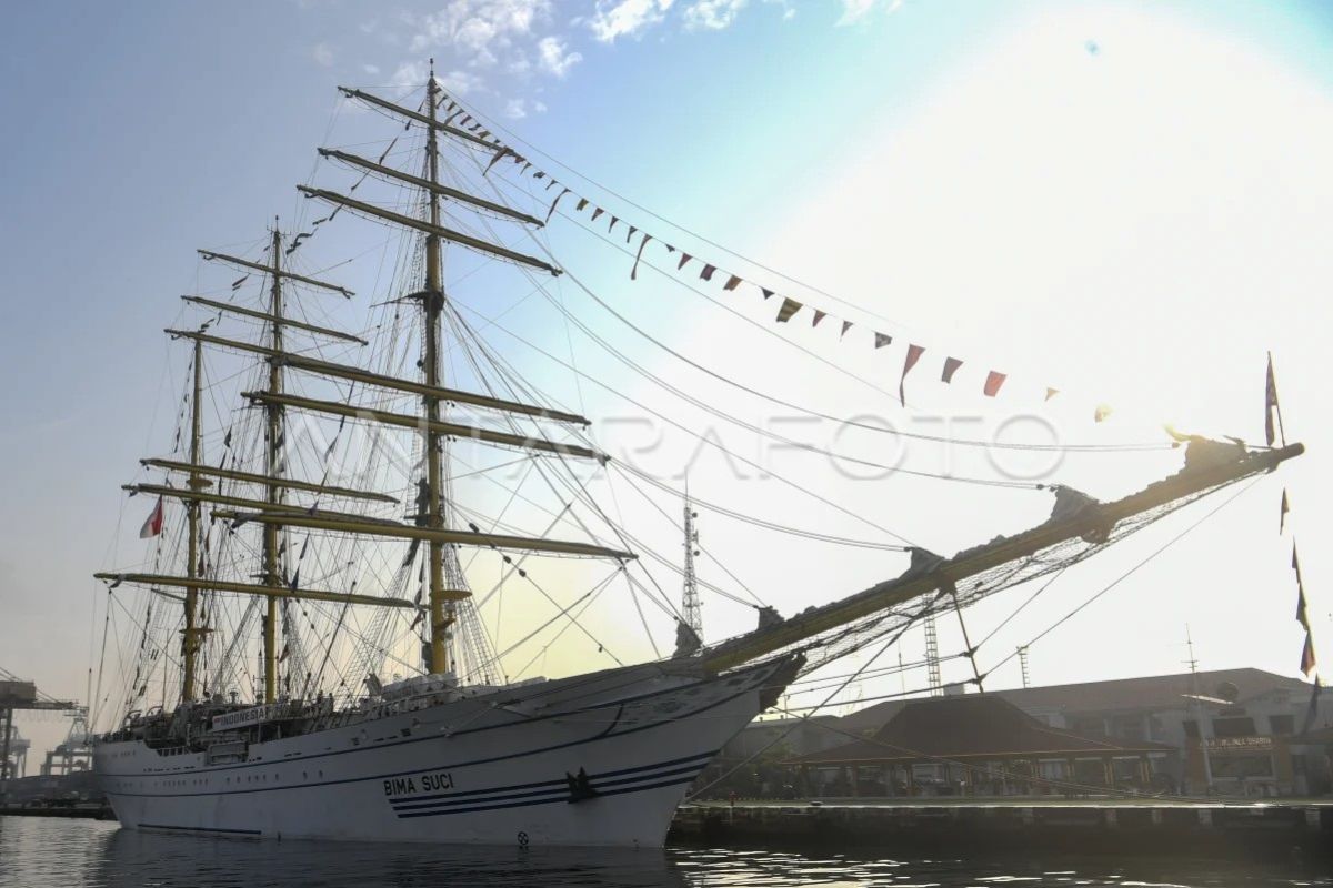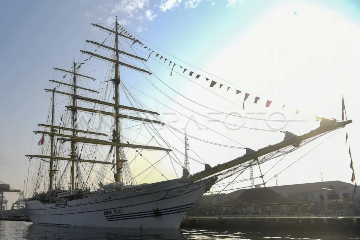 KRI Bima Suci-945 bersiap bertolak menuju Padang dalam rangka pelaksanaan latihan praktek pelayaran Kartika Jala Krida (KJK) 2025 Taruna Akademi TNI AL (AAL) Angkatan ke-72 di Dermaga Kolinlamil, Jakarta, Rabu (6/8/2025). Pelayaran tersebut juga diikuti peserta ASEAN Plus Cadet Sail (APCS) yang terdiri dari 38 perwakilan taruna dan junior officer serta 16 perwira pendamping dari 9 negara ASEAN dan 11 negara mitra ASEAN.