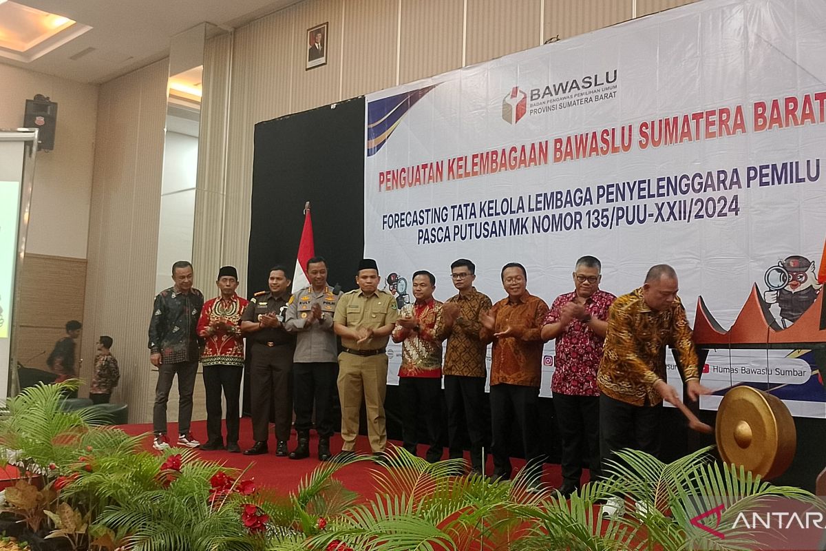 Bukittinggi (ANTARA) - Badan Pengawas Pemilihan Umum (Bawaslu) Provinsi Sumatra Barat menggelar penguatan kelembagaan, forecasting tata kelola lembaga penyelenggaraan pemilu pasca putusan MK nomor 135/PUU-XXII/2024 di Bukittinggi, Senin (11/08).