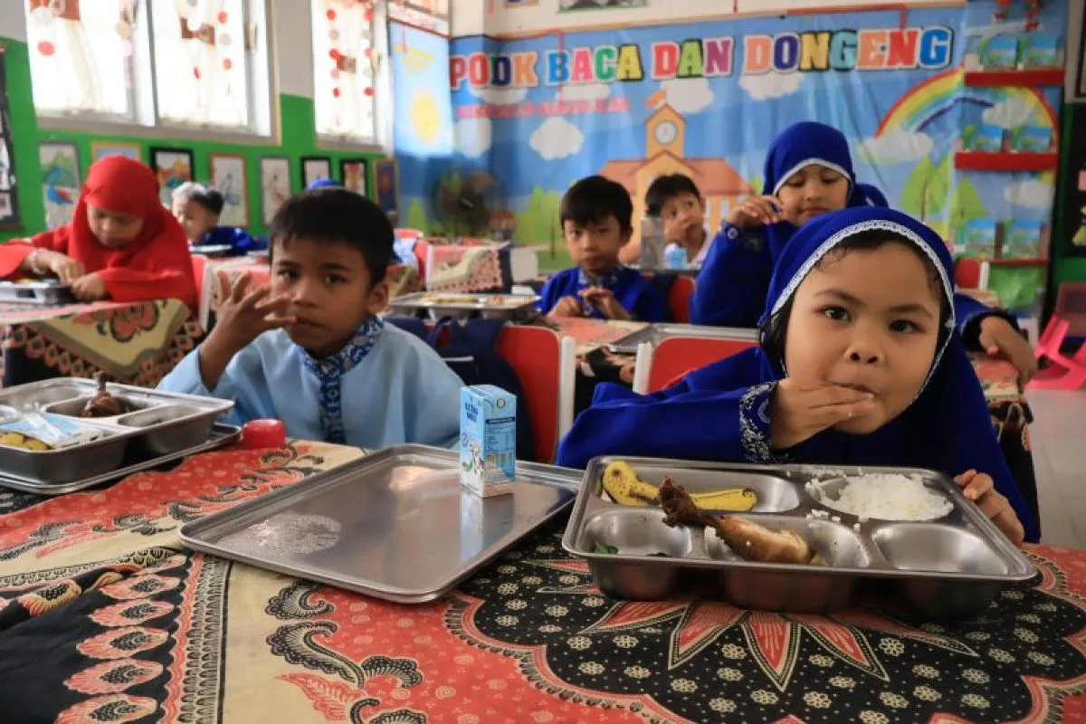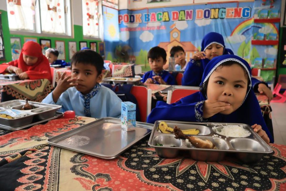 Pelajar di SD Negeri 24 Ujung Gurun, Kecamatan Padang Barat, Kota Padang menikmati santapan Makan Bergizi Gratis di Padang, Selasa (12/8/2025). Pemerintah Kota Padang bersama pihak terkait terus berupaya mempercepat dan memperluas sasaran penerima manfaat program unggulan Presiden Prabowo tersebut (ANTARA/Muhammad Zulfikar.