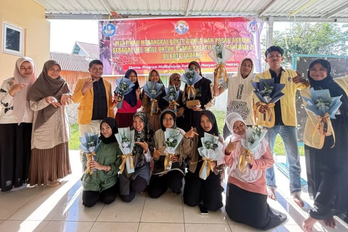 "Kegiatan pengabdian masyarakat lewat skema Program Multidisiplin Kemitraan Masyarakat (PMKM), memberi pelatihan merangkai buket bunga, dan papan akrilik sebagai "Life Skill" untuk usaha kreatif bagi Generasi Z di Kota Padang,” kata Ketua Tim PKM, Yuhendri L. V., S.Pd., M.Pd., di Padang, Jumat.