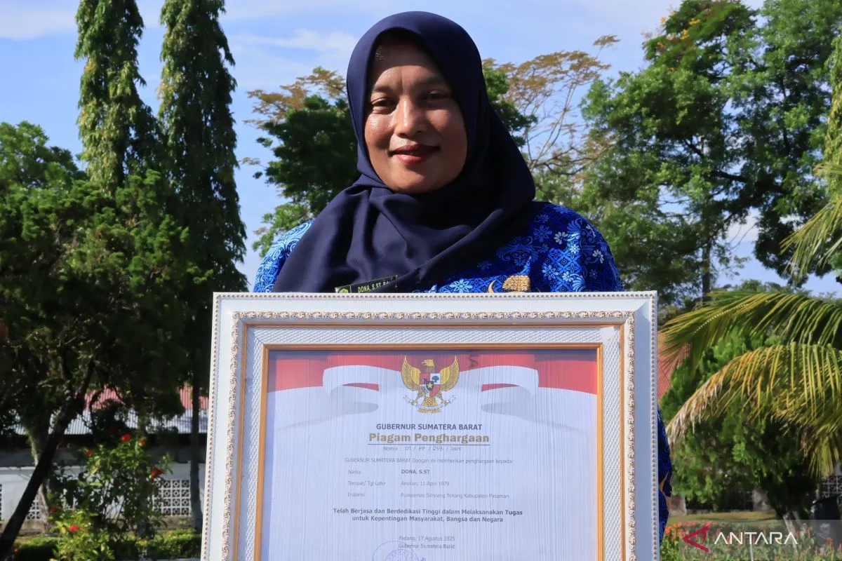 Dan benar saja, atas pengabdian dan dedikasinya, Dona menerima penghargaan dari Pemerintah Provinsi Sumbar pada HUT Ke-80 RI. Ia dinobatkan sebagai tenaga kesehatan teladan 2025 yang rela bertaruh nyawa demi menyelamatkan nyawa orang lain.