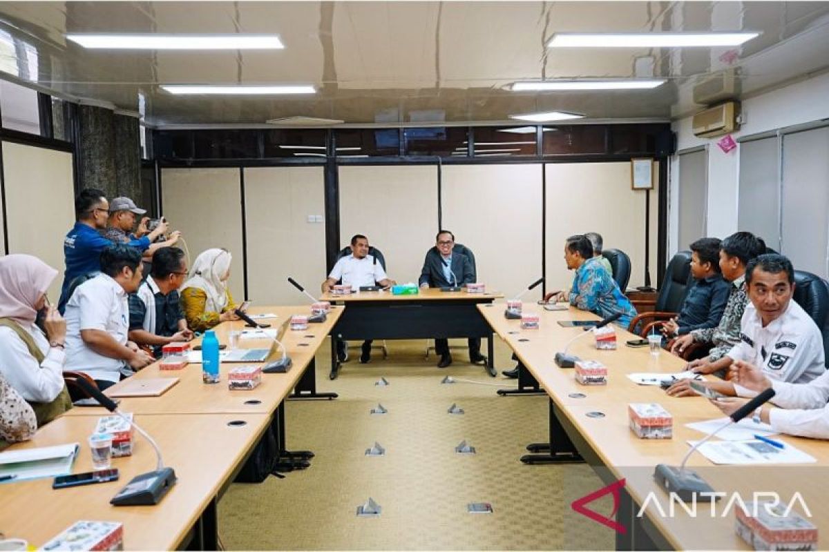 Wakil Bupati Solok Candra (kiri depan) dan Rektor Universitas Andalas (Unand) Efa Yonnedi (kanan depan) beraudiensi di Padang, Sumbar, Rabu (20/8/2025). Antara/HO-Humas Unand
