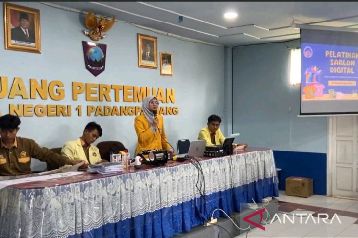 Padang Panjang (ANTARA) - Tim Pengabdian dari Departemen Kurikulum dan Teknologi Pendidikan FIP UNP yang terdiri dari Dr. Rahmi Pratiwi, M.Pd. (Ketua), Rosmaria, M.Pd., dan Luthfiani, M.Pd., bersama mahasiswa Abiem Haekal Suherman, Rohimun Farhan, Aufa Deza Fikri, Hendra Eka Putra, dan M. Adam Subhan, memberikan Pelatihan Sablon Digital Bertema Budaya Minangkabau di SMAN 1 Padang Panjang pada Jumat, 1 Agustus 2025.