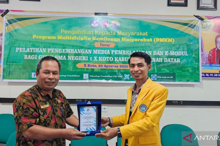 Batusangkar (ANTARA) - Tim Pengabdian Kepada Masyarakat (PKM) Program Multidisiplin Kemitraan Masyarakat (PKM-PMKM) Prodi Teknologi Pendidikan Fakultas Ilmu Pendidikan(FIP) Universitas Negeri Padang (UNP) memberikan pelatihan pengembangan media pembelajaran dan e-modul di SMA N 1 X Koto, Kabupaten Tanah Datar pada 23 Agustus 2025.