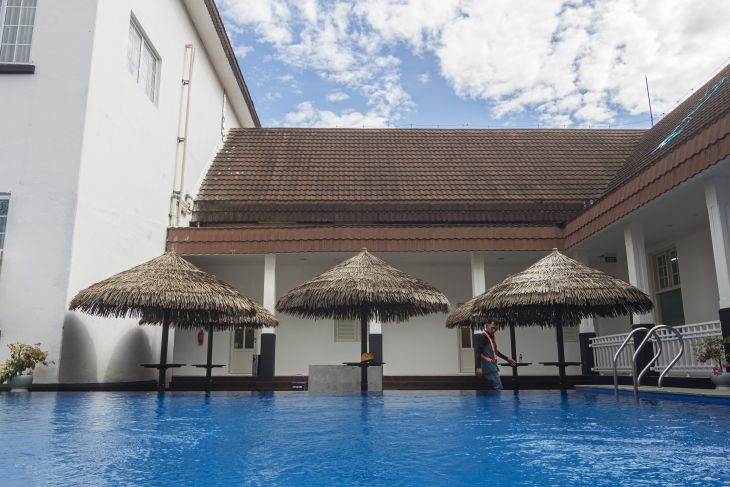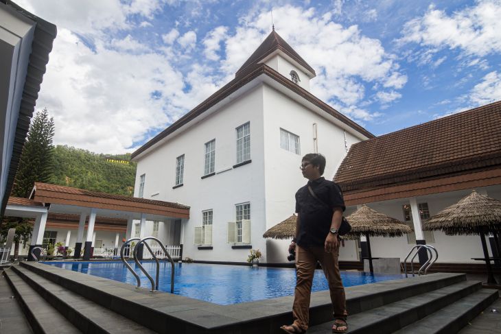 Sejumlah pekerja tengah menata sejumlah pajangan di Hotel Saka Heritage Ombilin, Kota Sawahlunto, Sumatera Barat, Jumat (29/8/2025). Bangunan cagar budaya yang berdiri tahun 1916 direvitalisasi PT. Bukit Asam menjadi hotel berstandar internasional dengan total 74 kamar. (ANTARA/Fandi Yogari) (ANTARA/Fandi Yogari/Fandi Yogari Saputra)Seorang pekerja melakukan pengecekan saluran air kolam renang Hotel Saka Heritage Ombilin di Kota Sawahlunto, Sumatera Barat, Jumat (29/08/2025). PT.Bukit Asam melakukan revitalisasi pada bangunan cagar budaya yang berdiri tahun 1916 menjadi hotel berstandar internasional bintang 4 atau 5, yang ditargetkan mulai beroperasi pada 1 Desember 2025. (ANTARA/Fandi Yogari) (ANTARA/Fandi Yogari/Fandi Yogari Saputra)Kendati terjadi perubahan fungsi dari perkantoran menjadi hotel, PTBA memastikan perubahan kecil yang dilakukan tidak akan mengubah makna dan sisi sejarah bangunan itu.