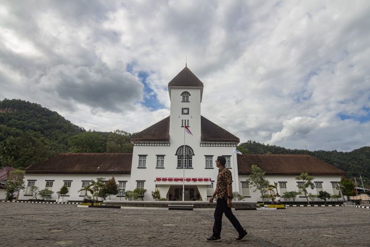HR General Services and Finance Secretary Head PT.Bukit Asam, Alman Syarif melintas di depan Hotel Saka Heritage Ombilin, Kota Sawahlunto, Sumatera Barat, Jumat (29/08/2025). Bangunan cagar budaya yang berdiri tahun 1916 direvitalisasi PT. Bukit Asam menjadi hotel berstandar internasional dengan total 74 kamar yang ditargetkan mulai beroperasi pada 1 Desember 2025. (ANTARA/Fandi Yogari) (ANTARA/Fandi Yogari/Fandi Yogari Saputra)HR General Services and Finance Secretary Head PTBA Alman Syarif mengatakan PTBA melihat kemajuan ekonomi dan kesejahteraan masyarakat tidak melulu tentang eksplorasi sumber daya alam sejak zaman Kolonial Belanda.