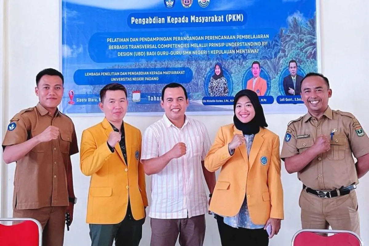 "Tim dosen UNP menginisiasi program pengabdian masyarakat dengan tema Pelatihan dan Pendampingan Perancangan Perencanaan Pembelajaran Berbasis Transversal Competencies Melalui Prinsip Understanding by Design (UbD) Bagi Guru-Guru SMK Negeri 1 Kepulauan Mentawai," kata Ketua Tim Pengabdian, Elfa Michellia Karima, S.Pd., M.Pd., di Padang, Selasa.