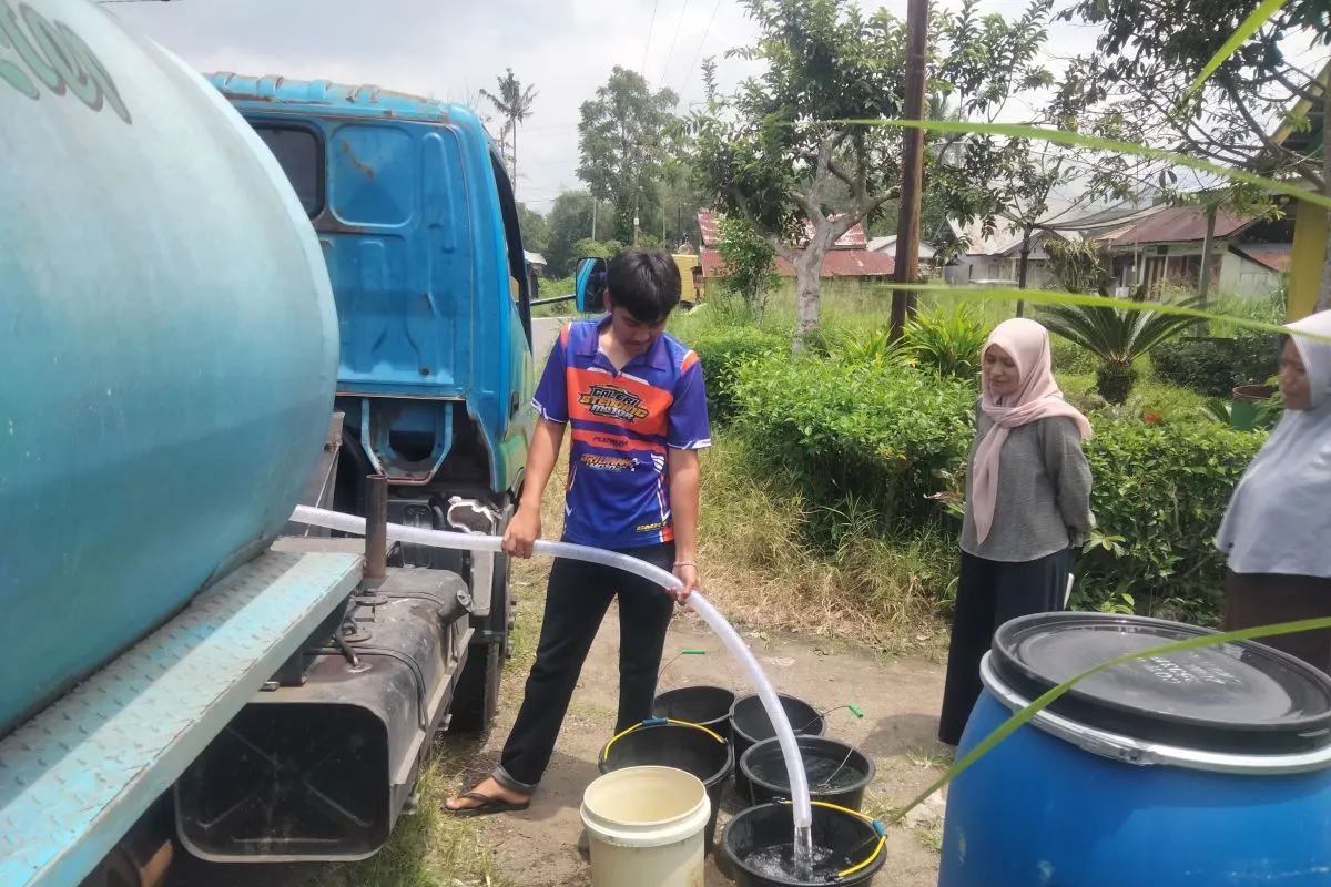 Lubuk Basung (ANTARA) - Badan Penanggulangan Bencana Daerah (BPBD) Kabupaten Agam, Sumatera Barat mendistribusikan air bersih bagi 14.496 kepala keluarga yang terdampak kekeringan di Kecamatan Ampek Angkek dan Kecamatan Canduang semenjak akhir Agustus 2025.