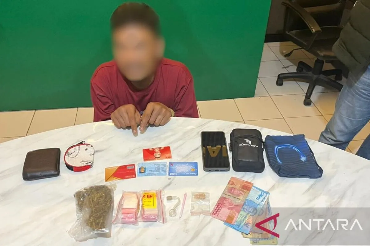Setelah digeledah di kediamannya, petugas juga menemukan 1 bungkus ganja kering seberat 20,73 gram, plastik klip dan kaca pirex.