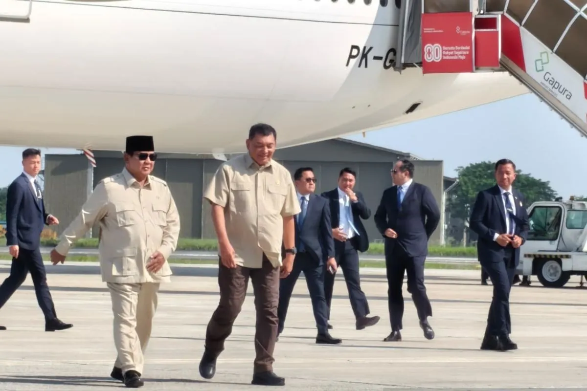 Pesawat Kepresidenan Indonesia-1 yang membawa Presiden Prabowo, Sekretaris Kabinet Teddy Indra Wijaya, dan Menteri Luar Negeri Sugiono mendarat dengan mulus di Pangkalan Udara (Lanud) Halim Perdanakusuma, Jakarta, Selasa, sekitar pukul 14.30 WIB.