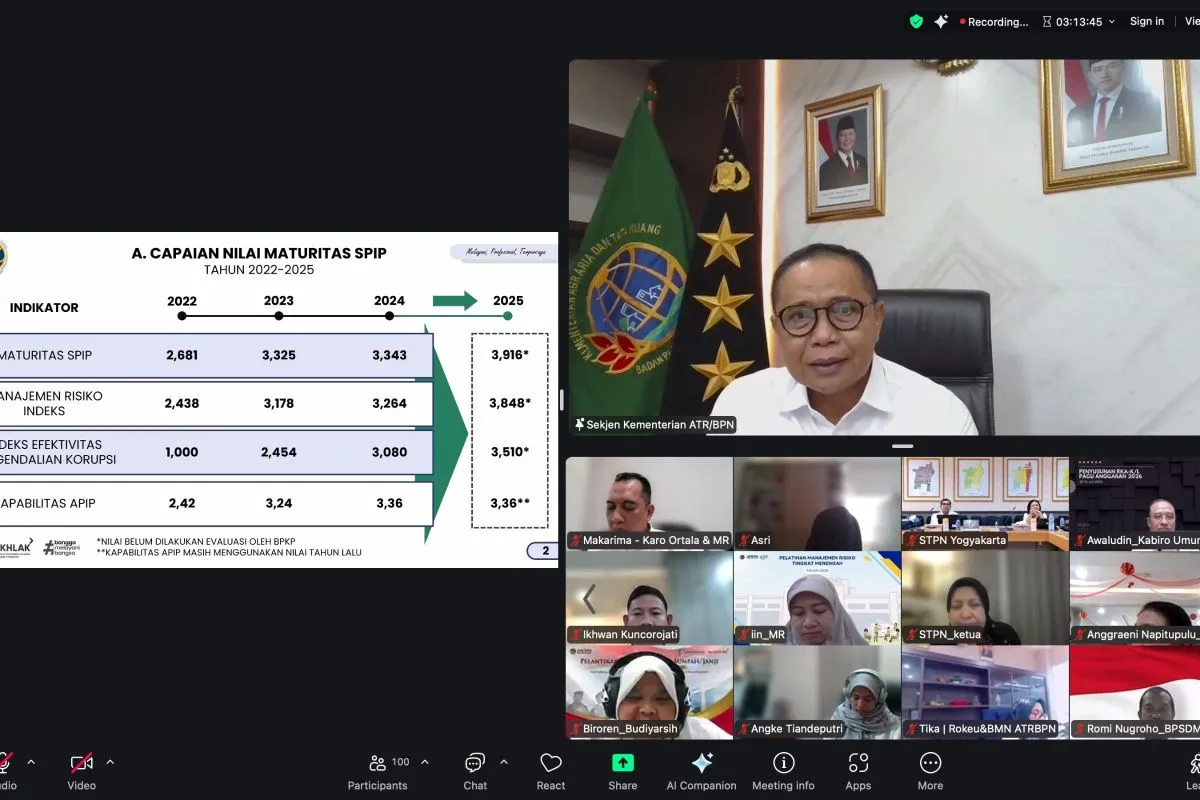 Ia juga melaporkan rencana aksi yang perlu ditindaklanjuti dari penilaian mandiri tahun 2025 oleh masing-masing satuan kerja di lingkungan Kementerian ATR/BPN.