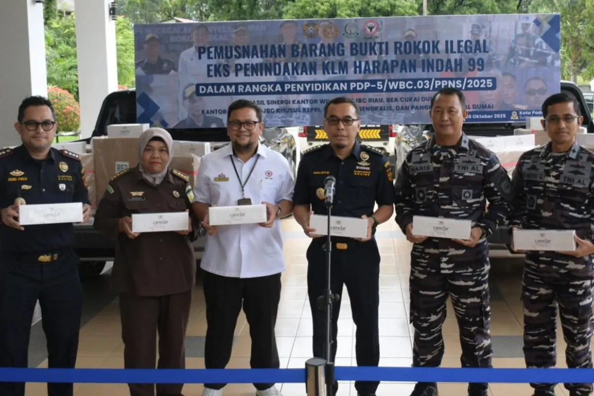 Padang (ANTARA) - Dalam upaya memperkuat pemberantasan peredaran rokok ilegal di Indonesia, Kantor Wilayah Direktorat Jenderal Bea dan Cukai (DJBC) Riau memusnahkan 25,6 juta batang rokok ilegal merek Camclar Original senilai Rp12,8 miliar yang diduga berasal dari Phuket, Thailand. Pemusnahan dilakukan bekerja sama dengan PT Semen Padang secara simbolis di Wisma Indarung, PT Semen Padang, Senin (20/10/2025).
