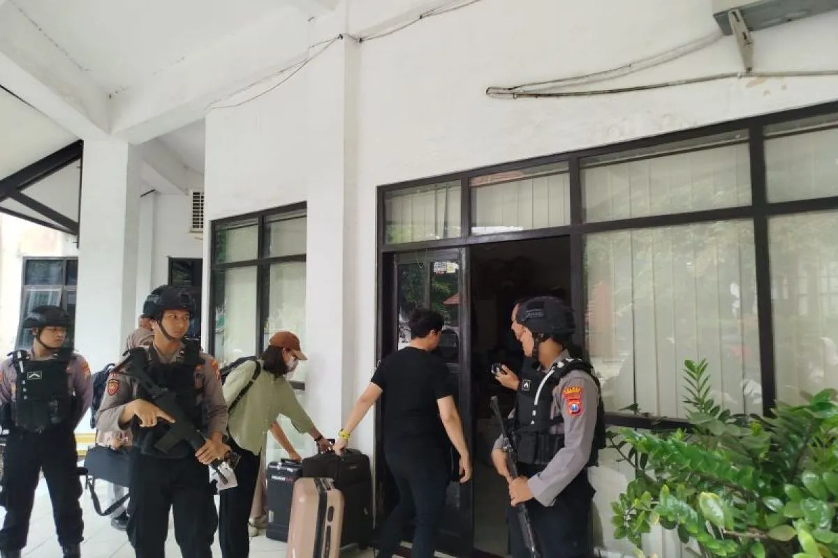Sejumlah anggota Polres Ponorogo tampak berjaga di sekitar ruangan untuk mengamankan proses tersebut.