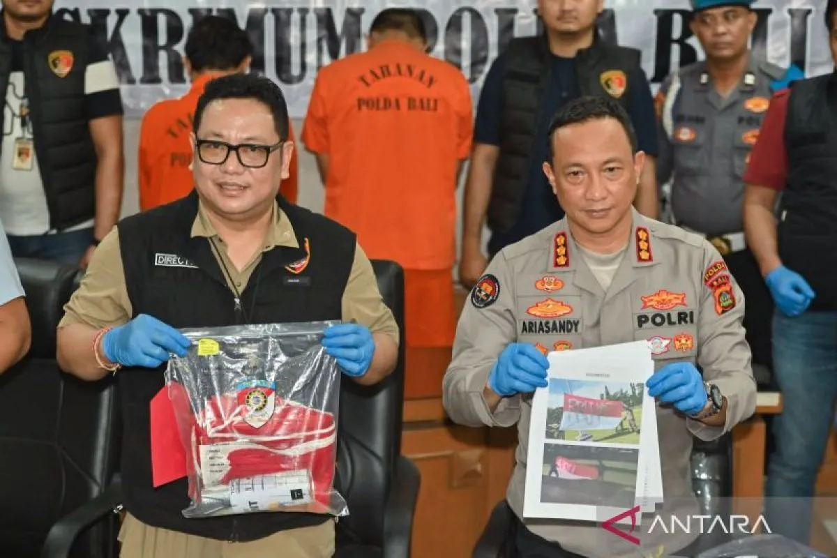 Denpasar (ANTARA) - Direktorat Reserse Kriminal Umum Kepolisian Daerah Bali dan Kepolisian Resor Jembrana mengungkap dua orang pelaku vandalisme yang mencoret bendera Merah Putih di Taman Kota Negara, Kabupaten Jembrana, Bali, pada Selasa (18/11).