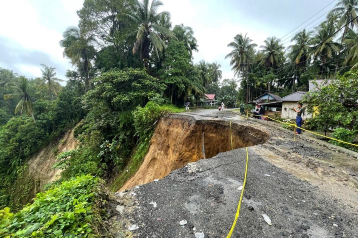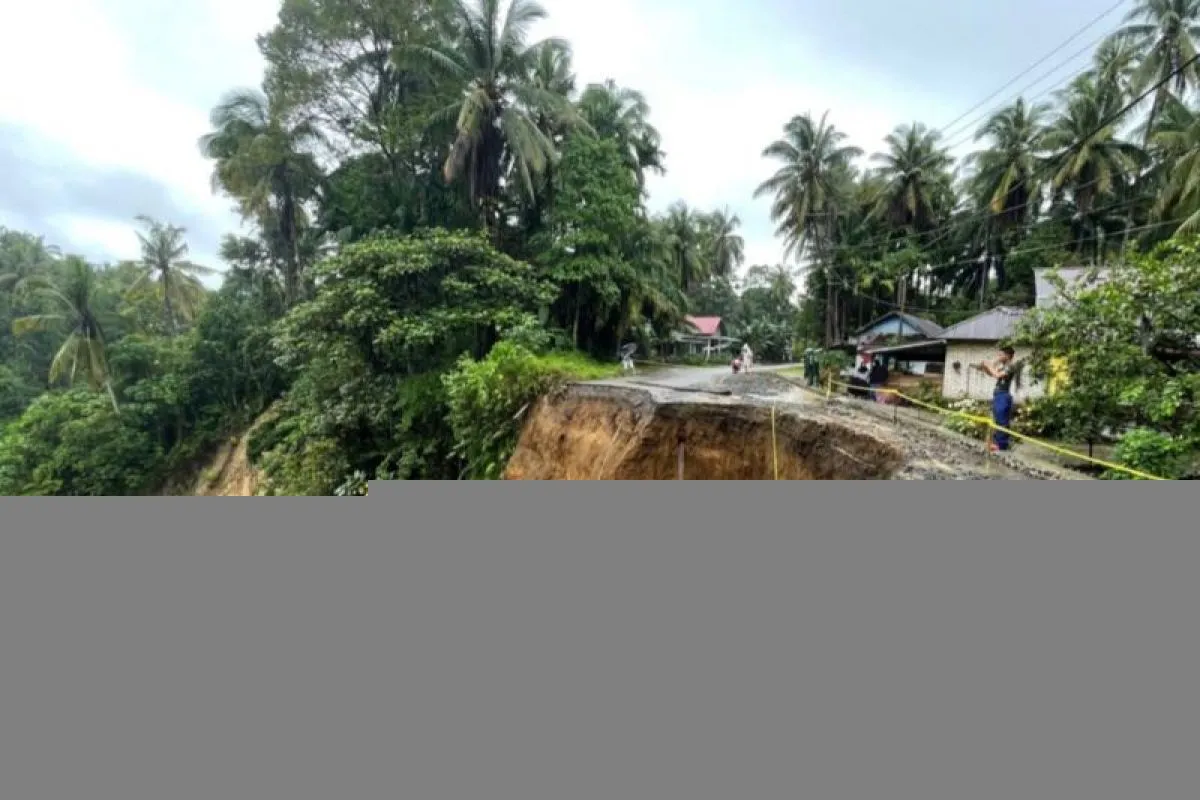 Kondisi jalan yang menghubungkan Kabupaten Padang Pariaman dengan Agam, Sumbar di Kecamatan Sungai Garinggiang, Padang Pariaman, Sumbar yang longsor. Antara/istimewa