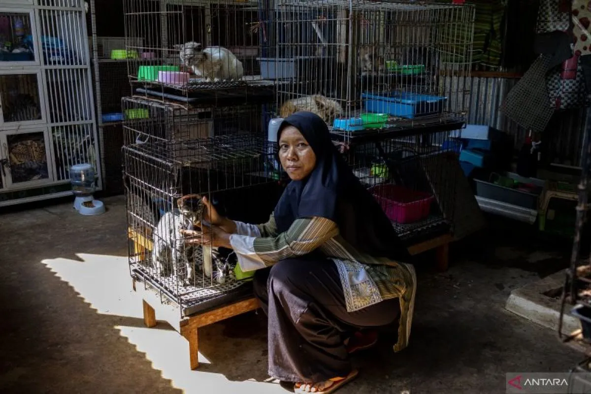 Kota Padang (ANTARA) - Salmiati menunjukkan kucing yang dalam masa perawatan usai diselamatkan dari banjir bandang dan tanah longsor yang melanda Kota Padang di selter penyelamatan di Kampung Teleng, Kelurahan Padang Besi, Kecamatan Lubuk Kilangan, Kota Padang, Sabtu (6/12/2025). Selama bencana menimpa Kota Padang, ibu dua anak ini sudah mengevakuasi sekitar 30 ekor kucing yang telantar akibat tersapu banjir dan tanah longsor yang melanda Kota Padang.