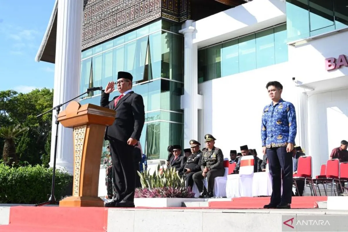 Bukittinggi (ANTARA) - Pemerintah Kota Bukittinggi mengelar upacara untuk memperingati Hari Bela Negara ke-77 tahun 2025. Upacara dilaksanakan di halaman Balaikota, Jumat (19/12). Dalam amanat Presiden RI Prabowo Subianto menyebut Bukittinggi sebagai penyelamat Indonesia di masa kritis.