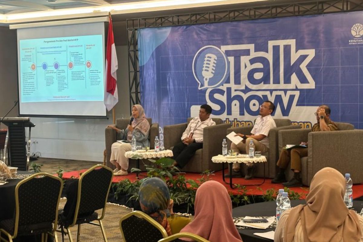 Padang (ANTARA) - Badan Penyuluhan dan Pengembangan SDM, Kementerian Kehutanan menyelenggarakan Talkshow Penyuluhan Kehutanan dengan tema “Produk Kelompok Tani Hutan Terjaga, Usaha Semakin Berdaya” di Kota Padang, Provinsi Sumatera Barat. Kegiatan ini menjadi upaya strategis dalam memperkuat kualitas produk, legalitas usaha, serta keberlanjutan pengelolaan hutan oleh Kelompok Tani Hutan (KTH).