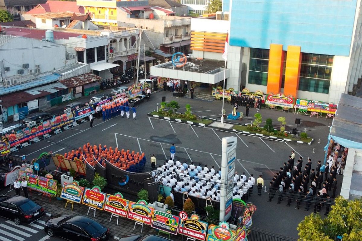 Padang (ANTARA) - Dalam rangka memperingati Hari Ulang Tahun (HUT) ke-64, Bank Nagari melaksanakan upacara bendera yang berlangsung khidmat di halaman Kantor Pusat Bank Nagari, Jalan Pemuda No. 21, Padang, Kamis (12/3/2026).