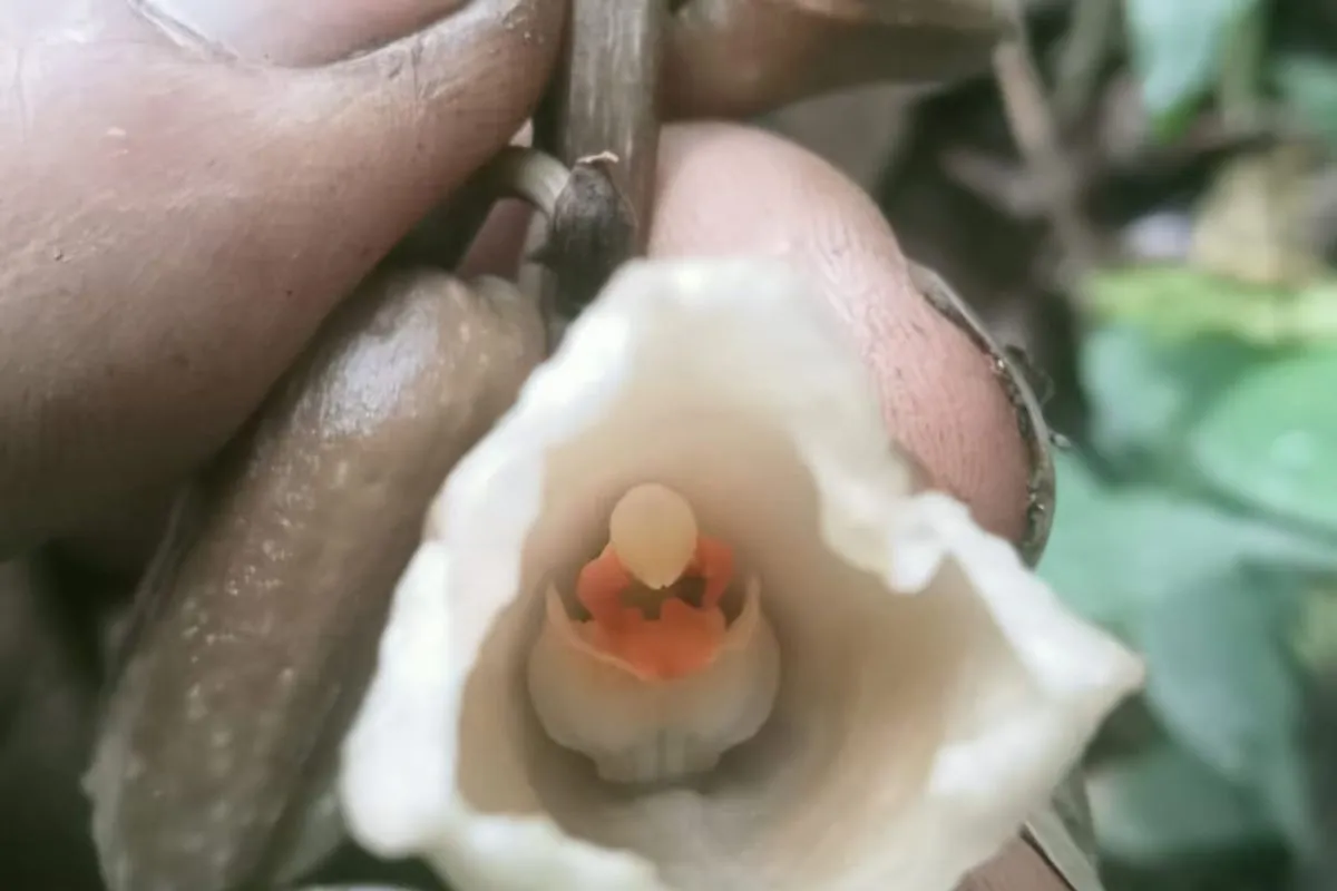 Ukuran mahkota bunga Gastrodia selabintanensis memiliki panjang empat centimeter dan lebar empat centimeter berwarna putih semu serta kuning.
