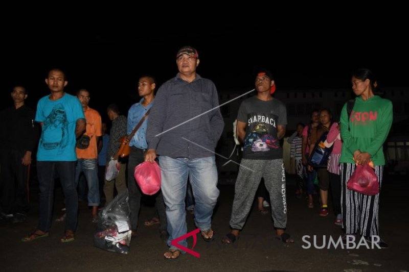 Sejumlah pekerja migran Indonesia berbaris sebelum menjalani pendataan oleh BP3TKI saat tiba di Dinas Sosial Provinsi Kalimantan Barat, Rabu (25/7) malam. Sebanyak 68 orang pekerja migran Indonesia dideportasi Malaysia melalui Pos Lintas Batas Negara (PLBN) Entikong karena masa berlaku paspor telah habis, tidak memiliki pekerjaan dan gaji tidak dibayar majikan. ANTARA FOTO/Reza Novriandi/jhw/wsj/18.