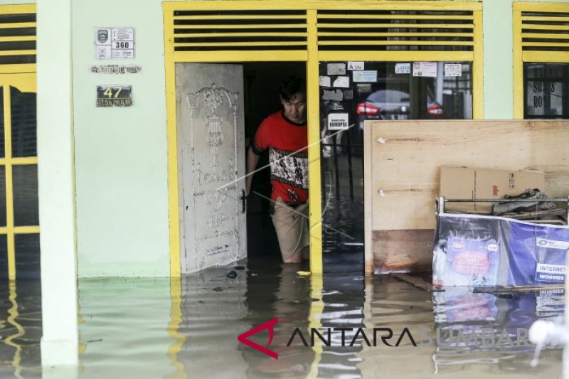 Warga berada di dalam rumahnya yang terendam banjir di Sekip Bendung, Palembang, Sumatera Selatan, Selasa (13/11/2018). Intensitas hujan yang sangat tinggi dalam beberapa hari terakhir menyebabkan sejumlah daerah di Palembang banjir. ANTARA FOTO/Nova Wahyudi/pd.