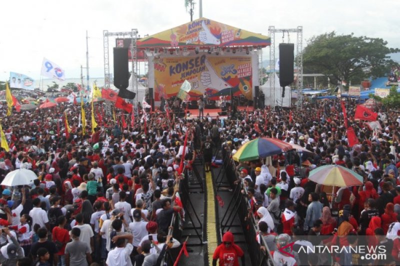 Ribuan simpasisan calon presiden dan wakil presiden Joko Widodo-Ma'aruf Amin nomor urut 01 berkampanye akbar di Padang, Sumbar, Selasa (9/4/2019). Dalam kampanye akbar tersebut yang dihadiri oleh wakil Menteri Energi dan Sumber Daya Mineral Repubik Indonsia Archandra Tahar serta 11 kepala daerah di Sumatera Barat siap memenangkan capres nomor urut 01 Joko Widodo- Ma'ruf Amin jadi presiden kedua kalinya. ANTARA SUMBAR/Muhammad Arif Pribadi/Maril