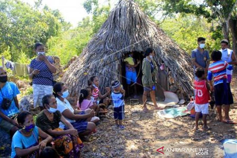 Warga antre untuk menerima suntikan vaksin dosis pertama bagi masyarakat pesisir pantai di desa Huilelot, Kecamatan Semau, Kabupaten Kupang, NTT, Jumat (30/4/2021). Pelaksanaan Vaksinasi bagi masyarakat pesisir yang diinisiasi oleh Polda NTT itu bertujuan untuk membantu pemerintah NTT dalam mempercepat proses vaksinasi di daerah-daerah sulit dijangkau oleh petugas kesehatan. ANTARA FOTO/Kornelis Kaha/hp.