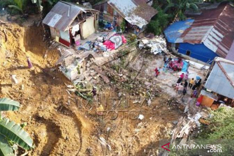 Sejumlah warga berada di lokasi rumah yang tertimbun tanah usai dibersihkan menggunakan alat berat di Kelurahan Kedari Caddi, Kendari, Sulawesi Tenggara, Jumat (2/7/2021). Dua orang balita korban tanah longsor tersebut saat ini dirawat di rumah sakit di Kendari akibat menderita luka-luka saat tiga rumah di wilayah itu tertimbun usai hujan lebat terjadi selama tiga hari di Kota Kendari. ANTARA FOTO/Jojon/wsj.